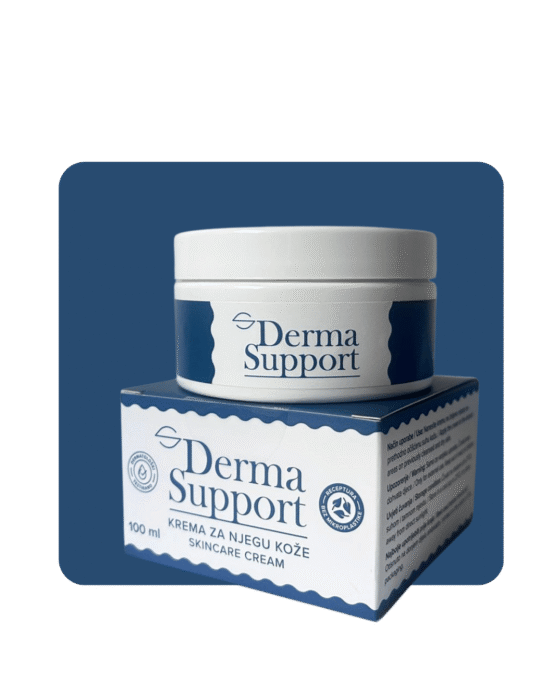 Derma support, prirodna njega za osjetljivu kožu. Namijenjena je njezi suhe, oštećene i osjetljive kože. U njezinoj formulaciji nalazi se ulje noćurka, poznato po primjeni kod atopične kože i psorijaze, macerat nevena i ulje avokada koji hrane i umiruju, shea maslac bogat omega-6 masnim kiselinama, te Antiderm, aktivna tvar koja smanjuje crvenilo i djeluje protuupalno. Zahvaljujući toj sinergiji, Derma Support pomaže umiriti crvenilo, obnoviti kožnu barijeru i zadržati vlagu ondje gdje je najpotrebnija. Bez parabena, mirisa i nepotrebnih dodataka, Derma Support postaje tvoj svakodnevni ritual nježnosti.